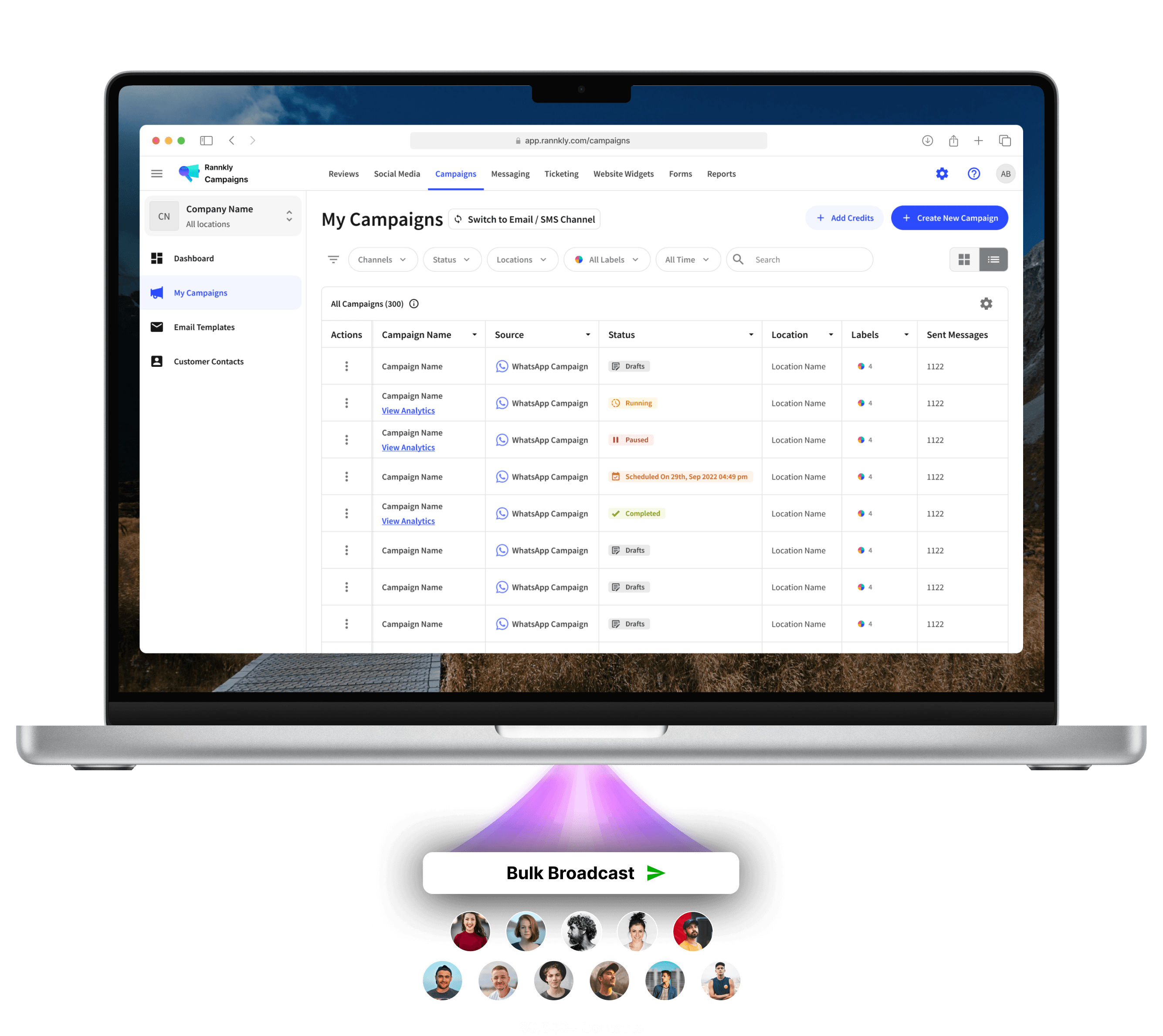 The WhatsApp campaign module enables you to create message templates, manage sending (including broadcast / triggered messages), track delivery & analytics, schedule, and can also integrate with PMS/POS.
